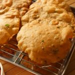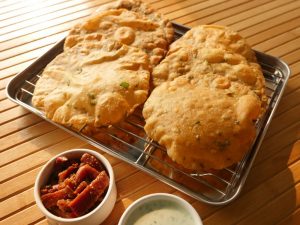 In wok,heat cooking oil and fry puri on medium low flame until golden brown.