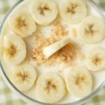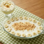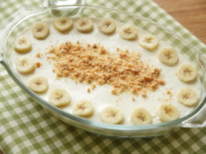 In serving dish,arrange sliced bananas and biscuits evenly.