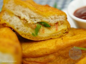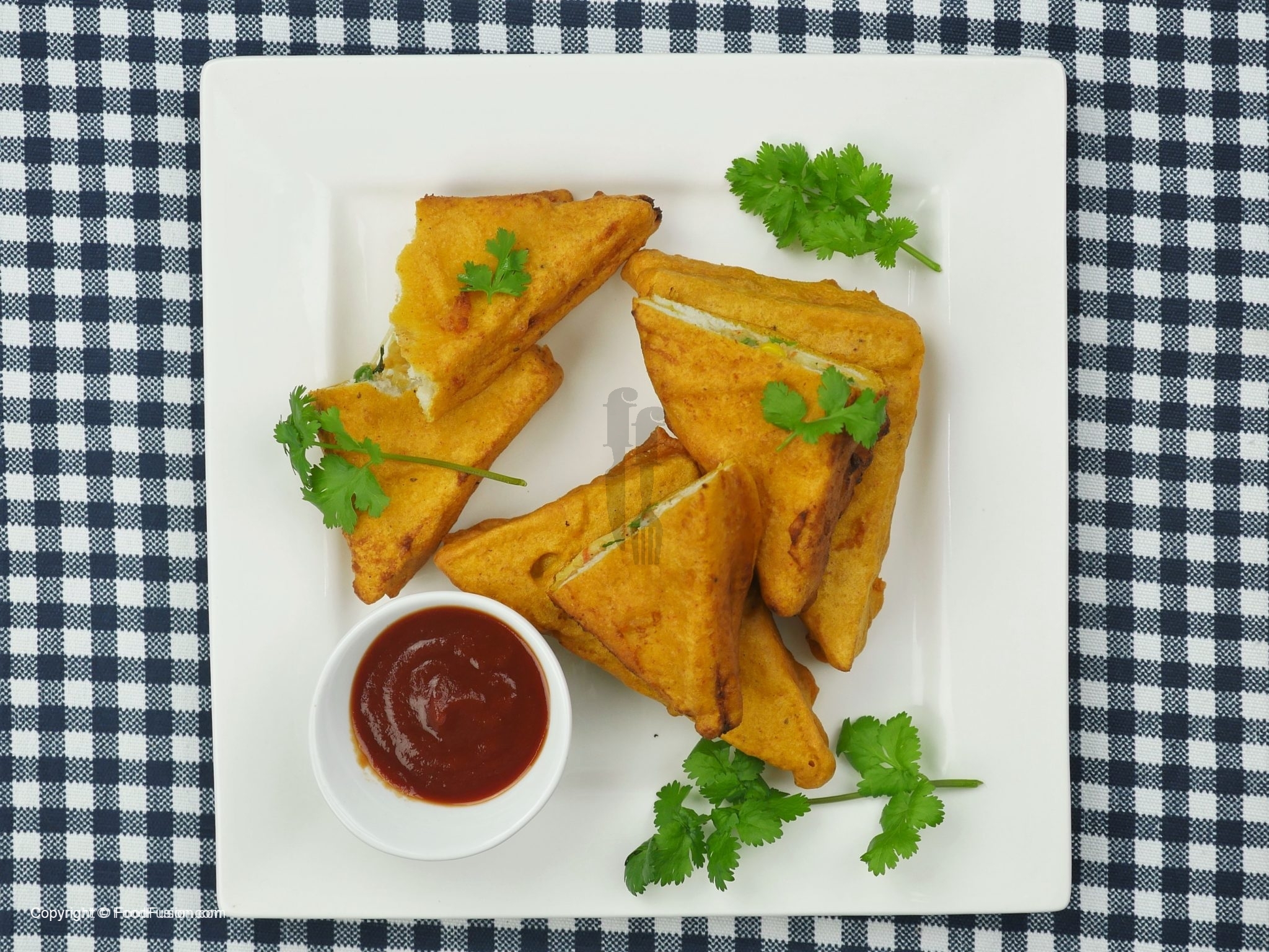 Bread pakora tayyar hai, tomato ketchup k saath serve karein.