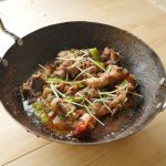In wok,add mutton with bones,fat and salt.