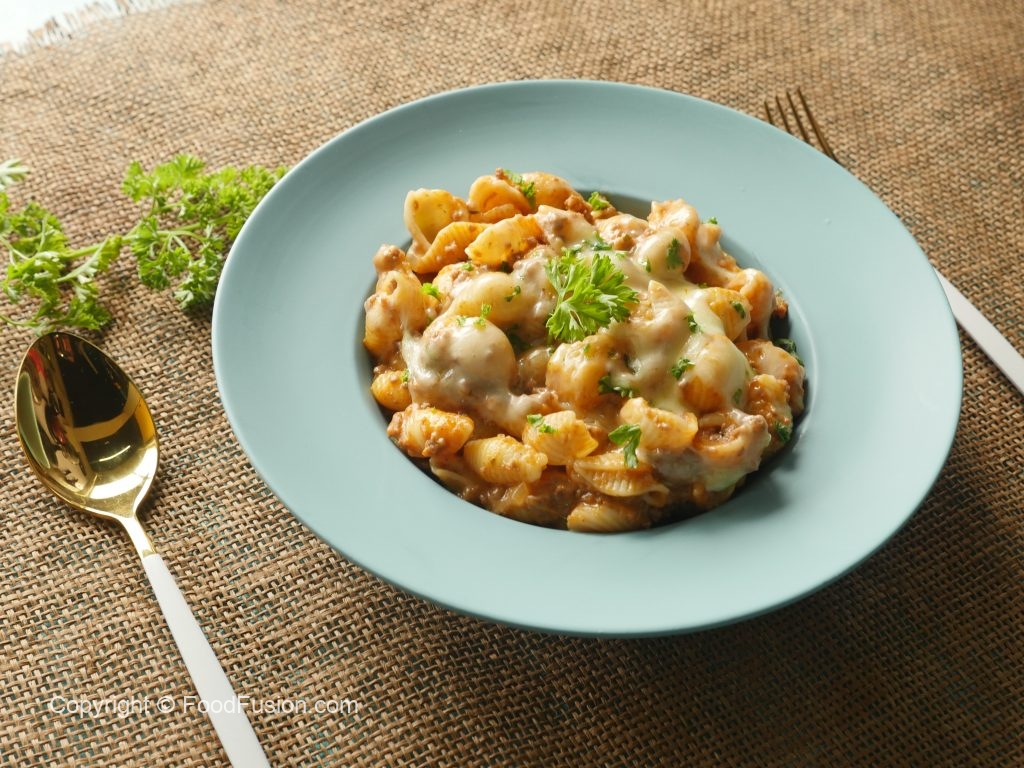 Mozzarella cheese,cheddar cheese aur fresh parsley dal ker dhak dein aur halki ancch per cheese melt hunay tak paka lein (approx. 2-3 minutes).