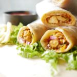 Paratha per tomato ketchup,pyaz soaked in lemon juice aur cooked chicken dal ker wrap ker lein & serve karein.