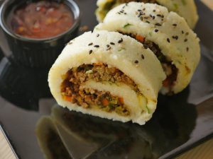 Add chicken mince and fold one side carefully.