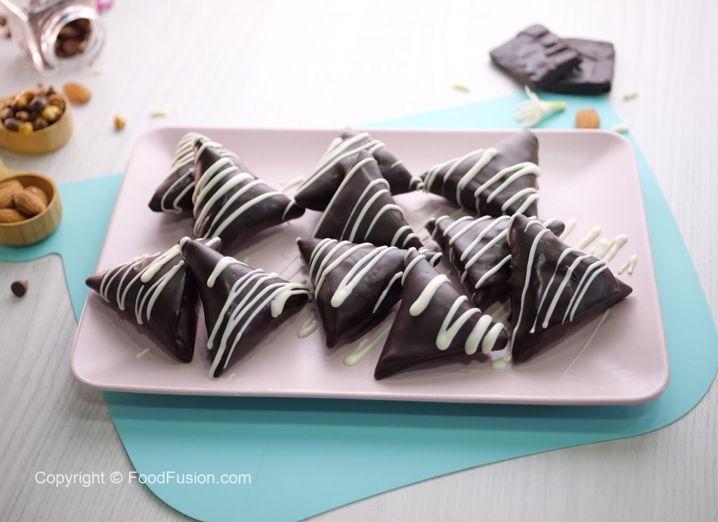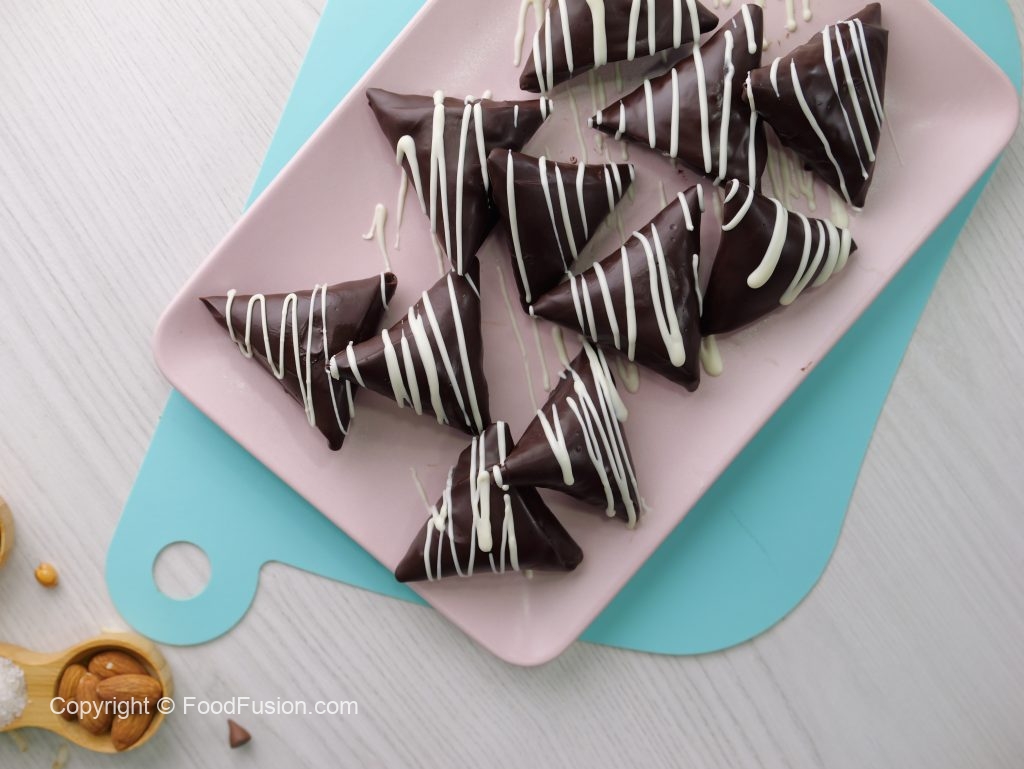Crispy air-fried samosas filled with a luscious chocolate-nut mixture, then coated in melted chocolate and crunchy nuts for the ultimate treat! #happycookingtoyou #foodfusion #araywahh #monthofgood