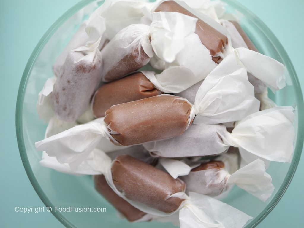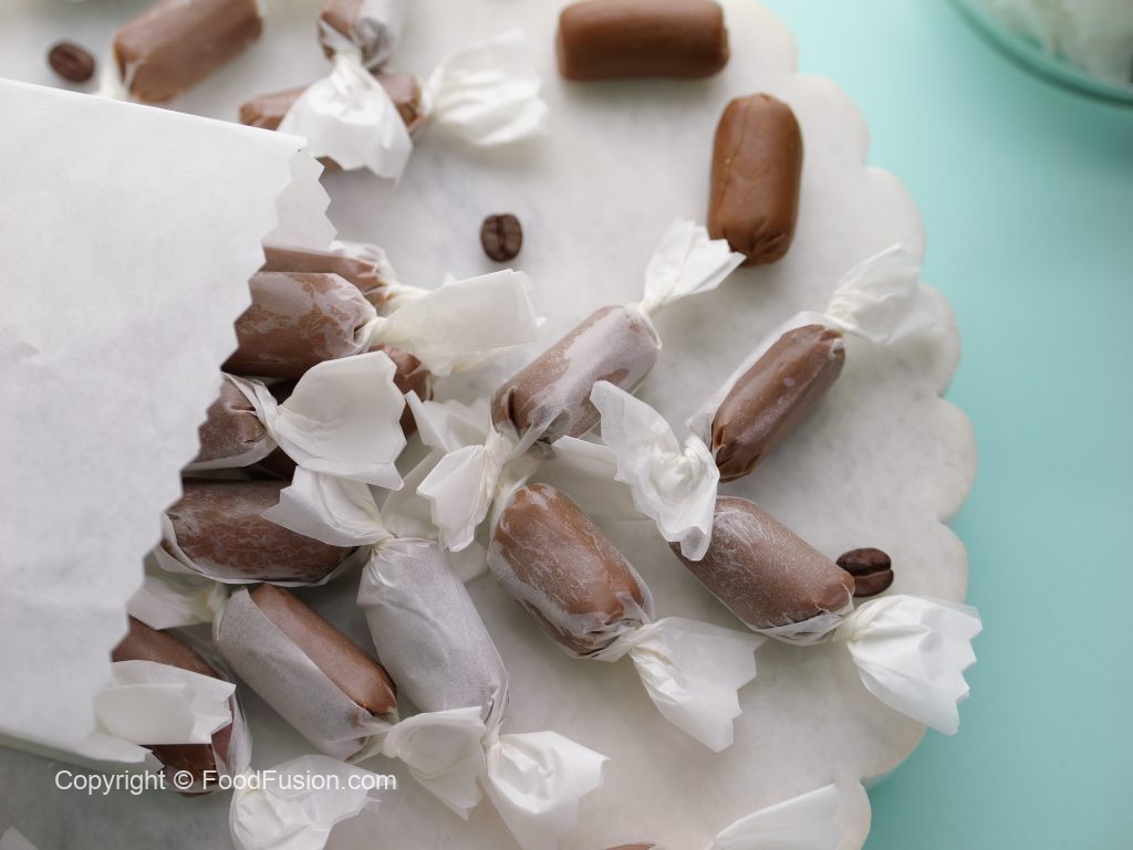 -Toffees ko completely thanda ker lein aur butter/ baking paper mein warp ker lein (makes 55-60).