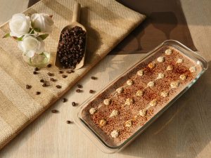 Now dip rusk one by one through the coffee+milk mixture to absorb the liquid then settle into a serving dish forming a bed.