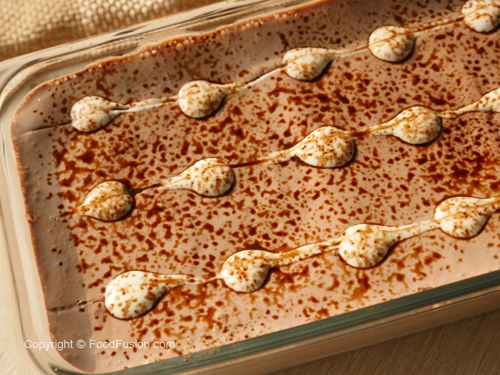 Repeat the layers alternatively until you reach the edge of the serving dish.