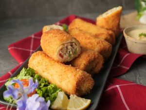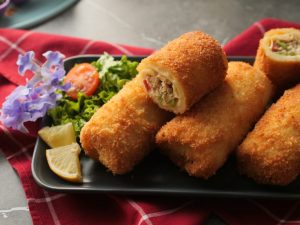 Bake in preheated oven at 200C for 18-20 minutes,brush oil on crepe rolls (flip in between once after 9-10 minutes).