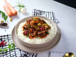-Add onion,carrots,French beans,dry red chilli,green chillies & mix well.