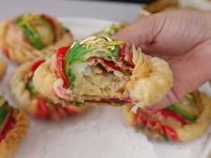 -Now twist and fold the sides of dough making a design (makes 12-13).