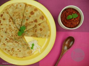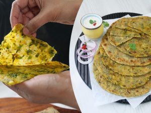 -On a griddle, add cooking oil & heat it, fry paratha on medium flame until golden on both sides (Makes 4-5).