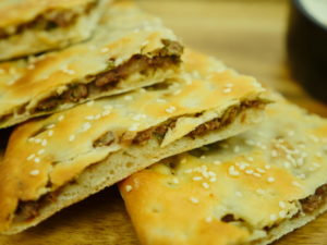 -On one rolled dough, spread mayonnaise, prepared chicken filling, mix cheese, prepared hot mustard sauce (1 tbs) & place another rolled dough over it & seal properly.