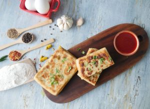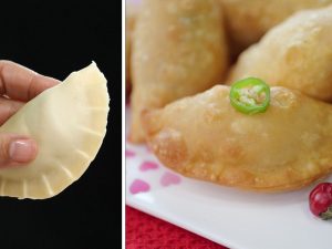 Chicken & egg mixture dal ker tamam sides ko fold ker lein (makes 8).