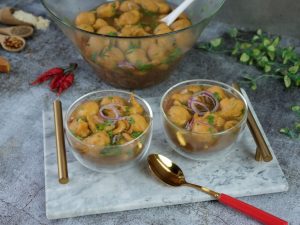 -Add onion rings,green chilli,fresh coriander,mix gently & serve!