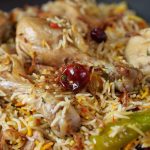 -Green chillies, orange food color, fried onion, lemon slices, fresh coriander, mint leaves dalain, phir kitchen cloth aur lid se cover kar ke dum par 10-12 minutes paka lein.