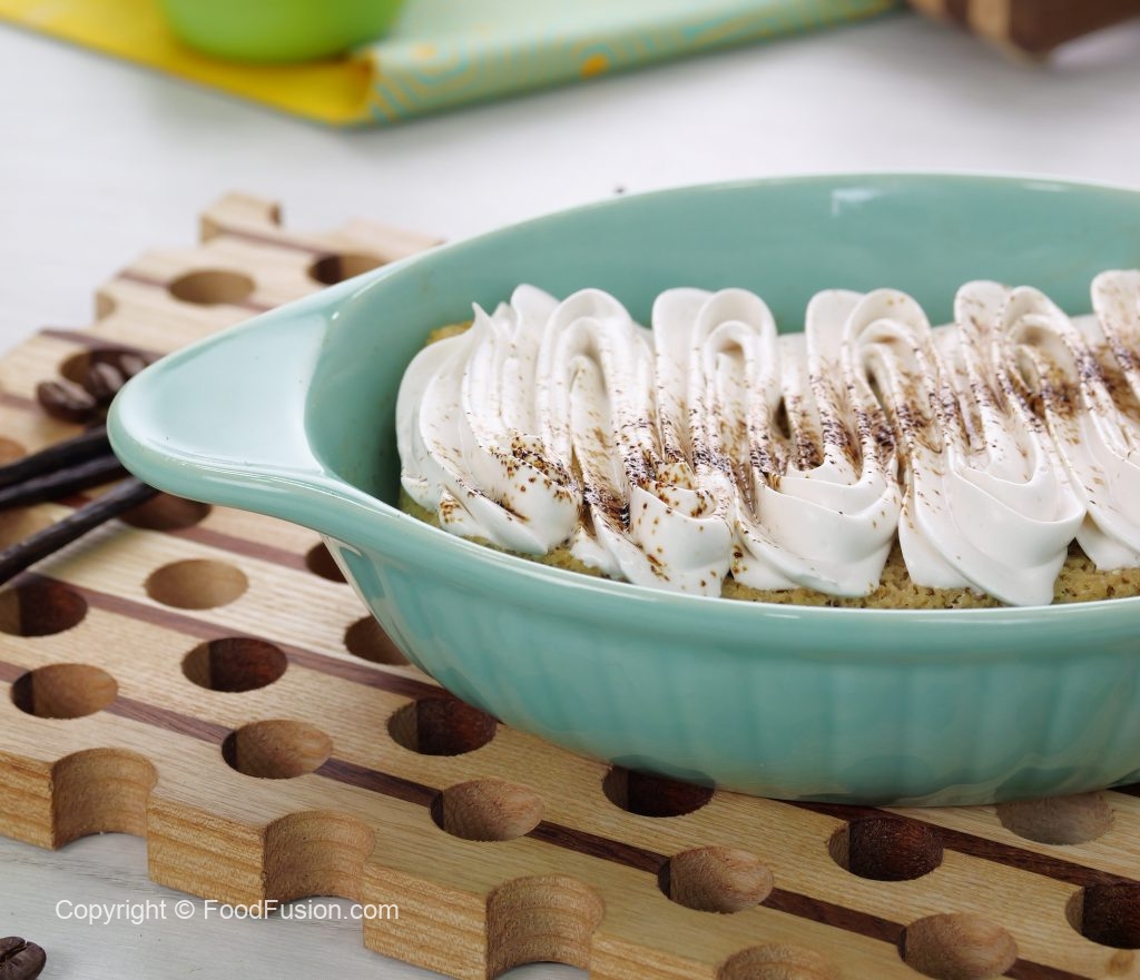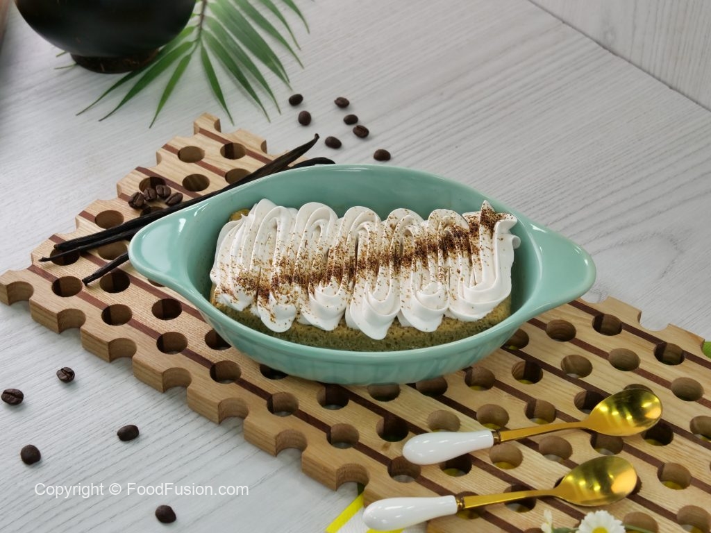 -In serving dish,place cake piece & pour prepared milk mixture on cake,garnish with whipped cream, coffee powder & serve chilled!