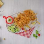 -Coat chicken sticks with roll sheets threads then press to flatten strips properly & set gently and let them rest for 10-15 minutes (makes 11-12).